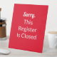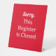 Sorry, This Register Is Closed Red and White Text Pedestal Sign
