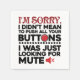 Funny and cute funny saying in modern black and red typography. The text on the button says "I'm Sorry I Didn't Mean To Push All Your Button. I Was Looking For Mute" Perfect for anytime of the year and makes a great gift for someone with a good sense of humour