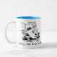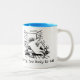A cartoon showing the back view of an organist frantically playing away at the organ with the caption "Sorry, too busy to eat" written underneath - . Ideal mug for organists or general musicians.