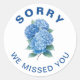 Round envelope seal with "Sorry we missed you". These sticker sheets are perfect addition for ministry and adding a personal touch to your envelopes. With an easy-peel backing, these stickers are simple to apply and will stay securely in place.