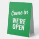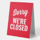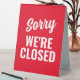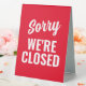 Sorry we're closed and come in we're open reversible Table Tent Sign. Custom sign with red and green colour marking. Handy signs for office, shop, store, corporate business, company, market, hotel, front desk, cafe, bar, restaurant, supermarket, checkout counter, cash register, cashier desk and other commercial places. Two sided signage. Change quantity to get the cheap bulk price. Useful notice and warning signs for visitors, clients, customers, shoppers etc. In English or other edit into other language.