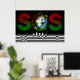Concerns about the environment do not always have to be gray! Stylish for your home. SOS saves the planet, posters in black - white, striped large letters SOS in red/green, in the middle of our earth and below in black/white generations - people, family, children