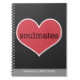 This personalised notebook, or journal, features a green heart that reads, "soulmates" inside it. The bottom has a space for the name of you and your special someone. Great romantic journal to celebrate or plan weddings, anniversaries, and Valentine's Day.