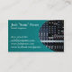 A sound mixing console with all its knobs and switches form the main background of this business card image. Your name and details appear over a green semi-sphere background on the left. This business card is especially suited to sound engineers, recording engineers and DJs, but is also suitable for anyone in the music or audio industry.
