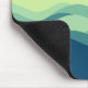 A design made up of irregular wave or hill like shapes arranged like a landscape with a progression of bands one behind or on top of another abstractly playing with colour and space. The design is also very reminiscent of sound and music with the wave like shapes and harmonising colours.