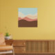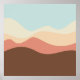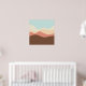 A design made up of irregular wave or hill like shapes arranged like a landscape with a progression of bands one behind or on top of another abstractly playing with colour and space. The design is also very reminiscent of sound and music with the wave like shapes and harmonising colours.