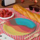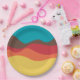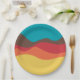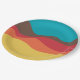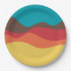 A design made up of irregular wave or hill like shapes arranged like a landscape with a progression of bands one behind or on top of another abstractly playing with colour and space. The design is also very reminiscent of sound and music with the wave like shapes and harmonising colours.
