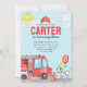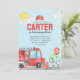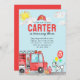 Modern Cute Sound the Alarm Fire Truck Dalmatian Dog Balloon Firefighter Birthday Invitation