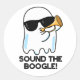 Sound The Boogle Funny Ghost Bugle Pun features a cute ghost looking cool in sunglasses blowing on the bugle! Perfect pun gift for family and friends who love cute ghost music puns.
