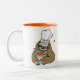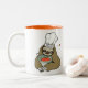 Image of sloth in chef’s hat holding a bowl of tomato soup with a love heart expression bubble, printed on two-tone customisable mug. Excellent as a get well gift for people who like sloths and soup.