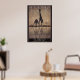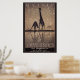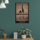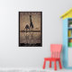 Two giraffes drink at a watering hole. This classic art poster advertising South Africa.