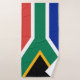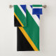 The South African flag is a horizontal bicolour with an triangle on the left and a Y-shaped band over the flag. The used colours in the flag are blue, green, red, yellow, white, black. The proportion of the South African flag is 2:3. The Flag of South Africa was adopted in 1994. The first use of the current flag design was in 1994. The last change to the current South African flag design was in 1994.
