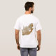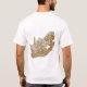 An editable title and slogan accompanies the green horizontal y-shape fimbriated in yellow and white with black, red and blue surrounding of the South African flag on the front of this t-shirt. The back displays a detailed map of South Africa.