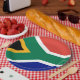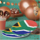 This design features the national flag of South Africa (officially the Republic of South Africa), which is the southernmost country in Africa. About 80% of South Africans are of Black African ancestry, while the remaining population consists of large communities of European, Asian and multiracial ancestry. South Africa has three capital cities: executive Pretoria, judicial Bloemfontein and legislative Cape Town. The most populous city is Johannesburg; other major cities are Durban, East London, Pietermaritzburg, Port Elizabeth, Soshanguve and Vereeniging. South Africa is often referred to as the "rainbow nation" to describe the country's multicultural diversity, especially in the wake of apartheid.