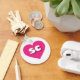 This keychain features a shapely and vibrant hot pink heart containing the bold, rounded, white lower case letters sc, a playful version of the abbreviation for South Carolina, the palmetto state.