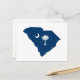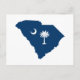 The shape of South Carolina in blue with white with the familiar palmetto and crescent. Create your own new address or moving postcard for your new SC town.