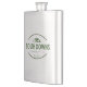 The product is a good size and came exactly as it was pictured. The lid is not attached to the flask, which could be dangerous on drunken nights... The print came out surprisingly well and looks very sharp. Would definitely recommend.