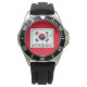 Has heft and feel of expensive stainless steel quartz wrist watches. Solid construction and good looks. Although it had a really top quality rubber strap, I substituted a stainless steel "Shark" style mesh strap, which I think is the most comfortable strap available. Perfect. True colors of original image. Clear, crisp image precisely aligned and spaced.