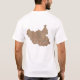 The front of this t-shirt bears a small South Sudanese flag with its familiar yellow star on blue triangle with black, red and green bands to the right, while the back displays a relief map of South Sudan. Available on t-shirts, sweatshirts, polos, long-sleeves and more.