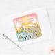 Bright and colourful scene offers a spectacular view of Southern California - wacky characters frolic on the beach and desert of SoCal showcasing Los Angeles, Orange County, San Diego, Santa Barbara, Riverside, Palm Springs, El Centro, Salton Sea, Anza Borrego and Joshua Tree parks as well as many others. This charming scene has it all – a surfer hangs ten while a killer whale leaps out of the water, zoo animals greet the tourists, and a tank rumbles in the distance among dozens of other happy people and creatures enjoying the socal sunshine...