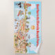 A spectacular cartoon of Southern California – showcasing Los Angeles, Anaheim, Long Beach, San Diego and many other cities plus most beaches. This bright and charming scene has it all – a surfer hangs ten while a mermaid lounges on a rock, a killer whale leaps out of the water, a muscular beach couple both flex to impress, zoo animals wait for tourists and a bull smashes into a bull fighter, all beneath the bright California sun shining high above it all.
