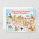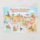 A spectacular cartoon of Southern California – showcasing Los Angeles, Anaheim, Long Beach and San Diego and most beaches. This bright and charming scene has it all – a surfer hangs ten while a mermaid lounges on a rock, a killer whale leaps out of the water, a muscular beach couple both flex to impress, zoo animals wait for tourists and a bull smashes into a bull fighter and much more…