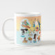 Bright and colourful scene offers a spectacular view of Southern California - wacky characters frolic on the beach and desert of SoCal showcasing Los Angeles, Orange County, San Diego, Santa Barbara, Riverside, Palm Springs, El Centro, Anza Borrego and Joshua Tree parks as well as the border cities of Tijuana, Tecate and Mexicali. This charming scene has it all – a surfer hangs ten while a killer whale leaps out of the water, zoo animals greet the tourists, wine lovers make a toast as a hiker is noticed by a UFO and much more…
