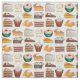 Fabric features an original illustration of an assortment of desserts popular in the American South. These include: coconut cake, banana pudding, ambrosia, sweet potato pie, pecan pie, chess pie, Mississippi mud pie, butterscotch pudding, hummingbird cake, red velvet cake, and peach cobbler. Ideal for your favourite foodie.