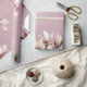 Floral wrapping paper on a roll with magnolia flowers pattern. A large pattern of pretty white flowers with pink centers and dark green leaves covers this high quality gift wrap that comes on a roll with custom length options. Use for wrapping big gifts, or for crafts.
