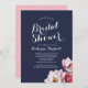 Personalise this Southern Magnolia bridal shower invitation with a quatrefoil pattern on the reverse with your own details. You can also change the background colours from pink and midnight blue, to your own party colours.