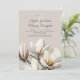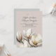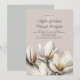 Pretty white magnolia flowers wedding invitation with casual wording. Big flowers decorate the bottom of vertical paper. A large ampersand (and sign) holds the names of the couple together. First and last names can be used or first only. Printed text in paragraph form holds all the information and can include a reception address, or reply information as you wish. Shown on basic paper with optional upgrades. The instant download selection lets you share the invite digitally.