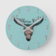 Southern Roots Country Longhorn Pink Rose & Green Round Clock