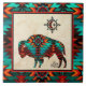 Brighten Your Home with this Unique "One of a Kind "Southwest Buffalo Tile! It Features a Southwest Buffalo and Sun on a Tan Sandstone Background...Surrounded by a Southwest Border in Turquoise, Orange & Black!