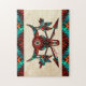 Enjoy this Unique "One of a Kind" Southwest Buffalo Skull Puzzle! It Features A Southwest Buffalo or Bison Skull and Arrows on a Sandstone Background...Surrounded by Southwest Border in Turquoise, Orange and Black!