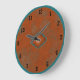 Inspired by the turquoise and copper verdigris colours and geometric designs distinctive to the artist's surroundings in the desert southwest. Arizona, Santa Fe, Southwest, Desert, and Lodge style design. Old West style numbers on clock face.