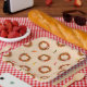 This design features colourful chile pepper wreaths tied with raffia bows and chile peppers on an adobe textured background.The original painting was inspired by the chile ristras and wreaths the artist hung at her home in New Mexico. Ristras are a symbol of welcome said to bring good health and good luck.