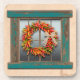 Southwest Chile Wreath on Rustic Blue Wood Window Coaster