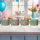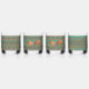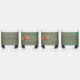 A set of whiskey glasses featuring coordinating southwest style designs of geometric borders in coppers, teals and turquoise and a fun javelina family, inspired by the colours, patterns and collard peccarys of the artist's home in the desert southwest.