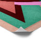 Shattered V (southwest var.) a vibrant geometric design that blends art deco and Bauhaus influences with a Southwestern colour palette. The striking contrast of pinks, greens, and browns adds a modern twist to traditional patterns, making it a perfect choice for contemporary home decor.