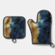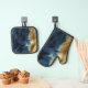 Southwest Gold Blue Cowhide Oven Mitt & Pot Holder Set
