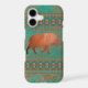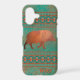 Personalize with a name, initials, text or no text at all on my original art of a copper colored javelina daddy silhouette, bordered by geometric patterns on a copper patina and teal colored background texture inspired by the colors, designs and collared peccarys found around my home in the southwest. They're not pigs!
