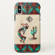 This is a Unique "One of a Kind" Southwest Kokopelli Cell Phone Case! It features a Southwest Kokopelli Playing the Flute and Dancing Around a Cactus Under the Sun, on a Sandstone Background...Surrounded by a Turquoise, Orange and Black Border!