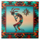 Brighten Your Home with this Unique "One of a Kind" Southwest Kokopelli Tile! It Features a Southwest Kokopelli Playing the Flute and Dancing Under the Sun on a Turquoise and Orange Sunset Background...Surrounded by a Southwest Border in Turquoise, Orange & Black!