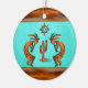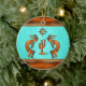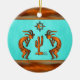 Personalise this "One of a Kind" Southwest Kokopelli Christmas Ornament! It Features Two Southwest Kokopelli in Copper and Black Playing the Flute and Dancing Around a Cactus....Under the Sun on a Turquoise Background!