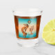 This is a Unique "One of a Kind" Southwest Kokopelli Shot Glass! It Features a Copper Kokopelli Playing the Flute and Dancing Around a Cactus Under the Sun on a Turquoise and Orange Sunset Background...Surrounded by a Copper Border!