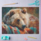 A relaxed brown bear rests on a turquoise-and-rust Southwest blanket—perfect for statement furniture flips. The warm earthy palette and Navajo-inspired pattern bring cozy lodge and ranch vibes to rustic farmhouse interiors. Use on drawer fronts, cabinet panels, hutches, and armoires to create a focal point that feels handcrafted yet refined. The large portrait scale and painterly texture lay smoothly, turning dressers, sideboards, and nightstands into showcase pieces. southwest lodge bear art, rustic cabin bear decor, brown bear portrait tissue, woodland wildlife decoupage paper, lodge dresser drawer liner, farmhouse cabin furniture makeover, luxury decoupage tissue