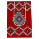 An original design in a bold red and turquoise geometric pattern created by Artellus. The artist was inspired by the colours and patterns around her home in the desert southwest.