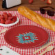 An original design in a bold Red and Turquoise geometric pattern created by Artellus. The artist was inspired by the colours and patterns around her home in the desert southwest.