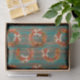 This design is of colorful chile pepper ristra wreaths tied with raffia bows and chile peppers and chile peppers on a rustic wood background. My original painting was inspired by the chile ristras and wreaths I hung at my home in New Mexico. Ristras are a symbol of welcome said to bring good health and good luck.