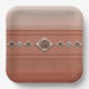 Inspired by the amazing layers of sandstone colours the artist saw when visiting the hoodoos of Bryce Canyon and the geometric designs distinctive to her surroundings in the desert southwest.Textured ombre bands of pink, peach and sienna sandstones, accented by bands with coppery conchos and turquoise stones on southwest style diamonds. Southwest, Santa Fe, Desert, Western or Lodge style.